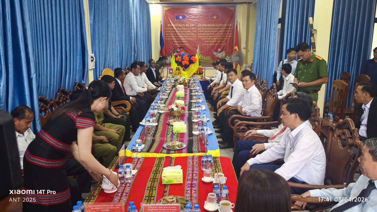 Xã Đông Giang thăm, chúc Tết đảng bộ, chính quyền huyện Kà Lừm, tỉnh Sê Kông, Lào